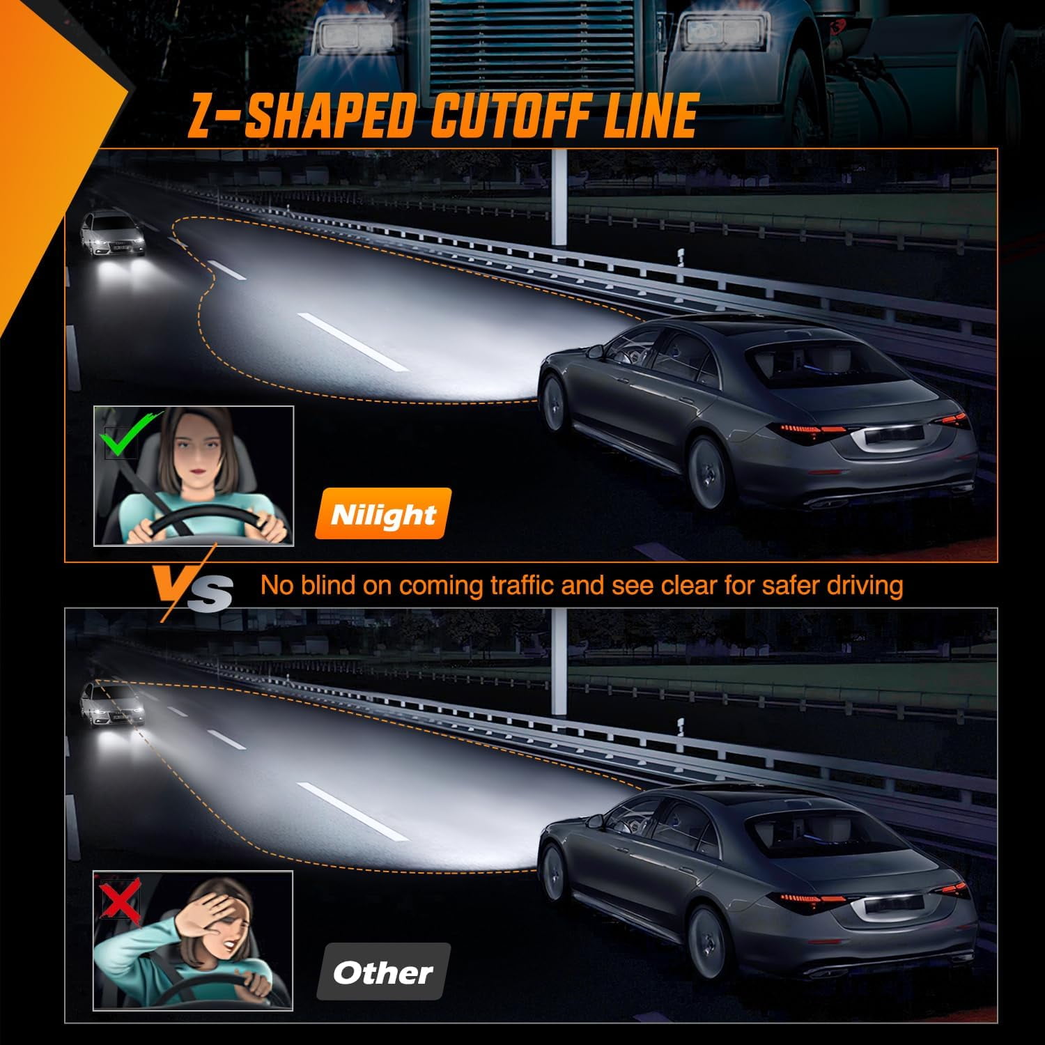 - Sharped Z-Cut Line - Advanced DOT certified high/low beam ensures a safe and legal ride. The optically designed lenses provide 100% control of light, refracting it through the angles we designed, controlling the output for better beam clarity and refraction angles without dazzling oncoming traffic