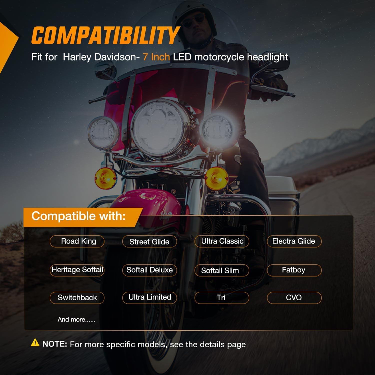 - CompatibilityWidely suitable for most motorcycles with 7 inch headlight and 4.5 inch fog passing light, Road King, Street Glide, Ultra Classic, Electra Glide, Heritage Softail, Softail Deluxe, Softail Slim, Fatboy, Switchback, Ultra Limited, Tri, CVO, 1989-2022. (Please check the product description for more detailed information)